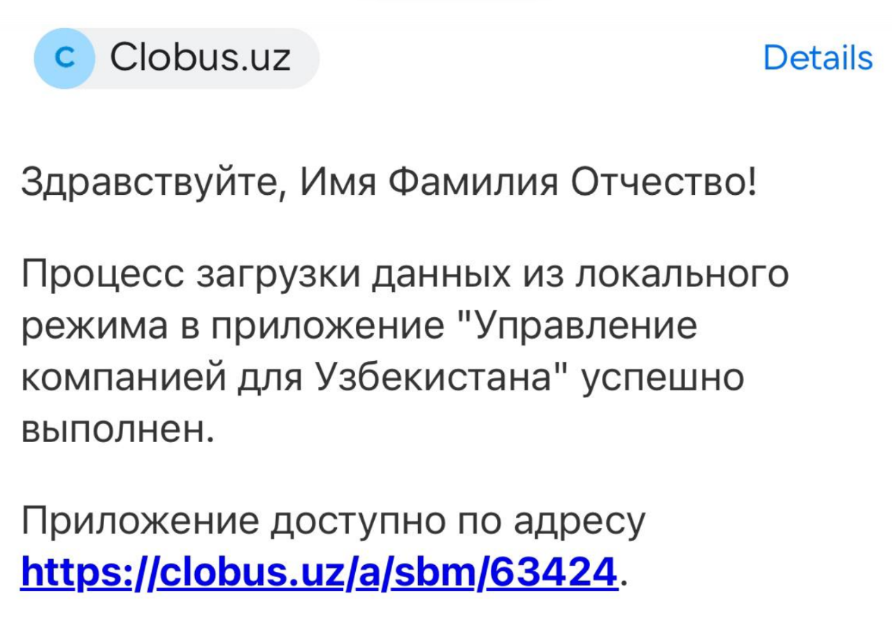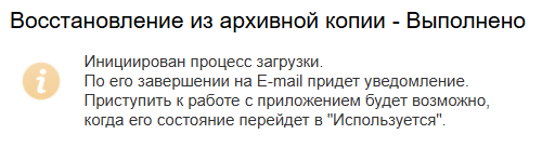 По окончании создания приложения из резервной копии на электронный адрес пользователя будет отправлено письмо с уведомлением.