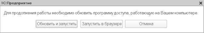 Если будет выведено окно c предложением обновить программу доступа, нужно нажать в нем кнопку Обновить и запустить: