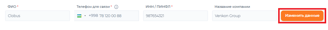2) При ошибочном заполнении или для корректировки данных нажмите кнопку "Изменить данные" и введите новые данных, затем нажмите на кнопку "Сохранить" данные