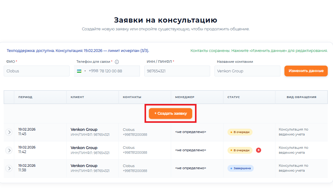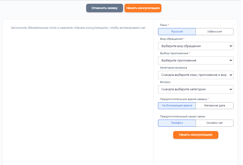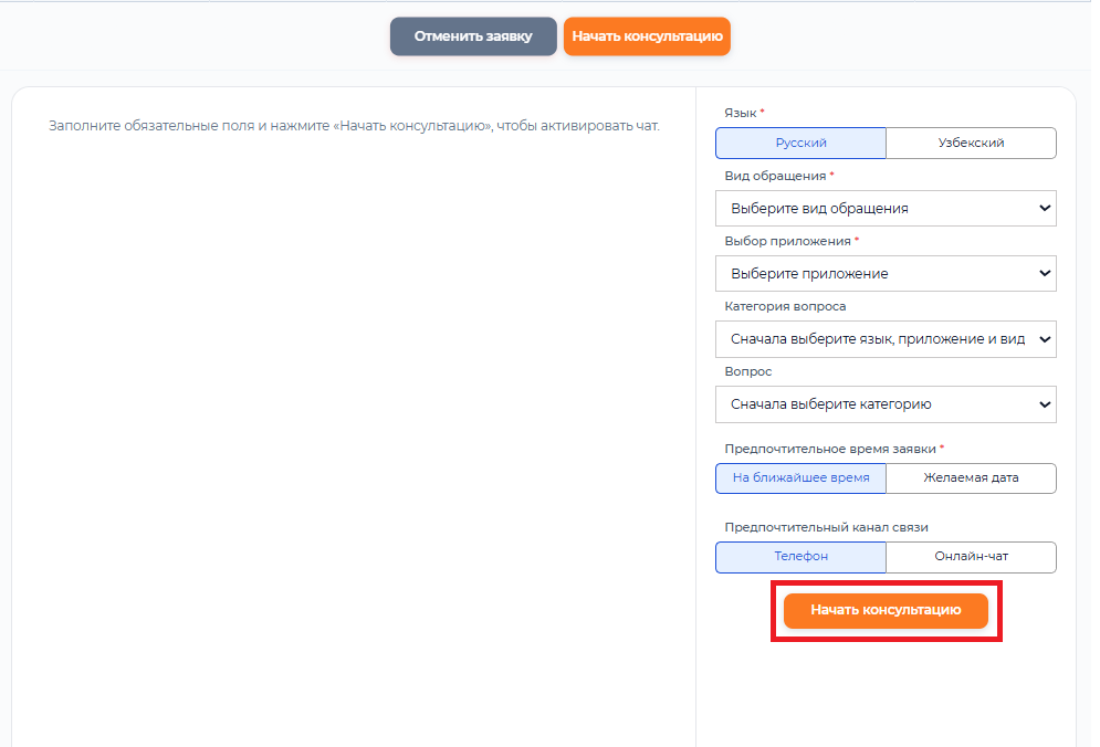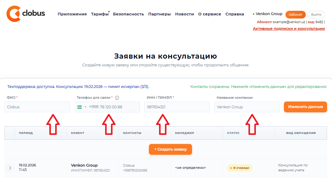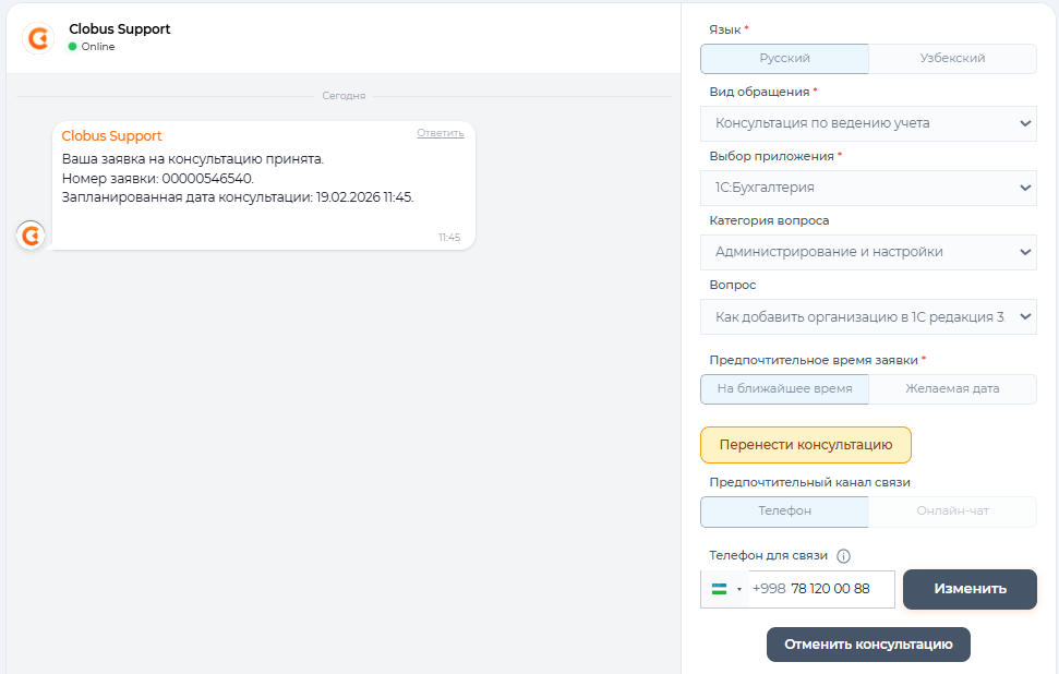 Чтобы оставить заявку на консультацию в сервисе clobus.uz, для начала необходимо войти в сервис. О том, как это сделать, подробно рассказано в следующей статье: Вход в сервис