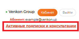 После того как вы вошли в сервис перейдите на страницу "Активные подписки и консультации" в правом верхнем углу главной страницы.
