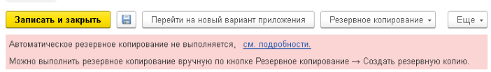 В этом случае в карточке приложения будет выведено уведомление, что автоматическое резервное копирование не выполняется (то есть, резервные копии приложения по расписанию не создаются):