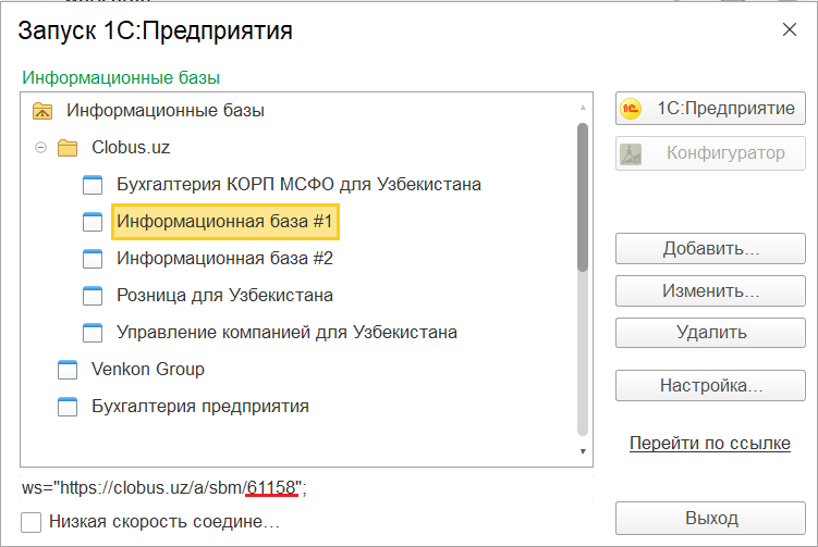 В окне Запуск 1С:Предпприятия | В конце строки подключения, если выбрать приложение в списке Информационные базы |