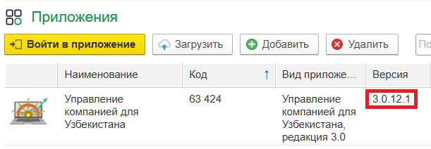 Версия приложения выводится в таблице приложений в столбце Версия: