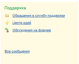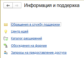 1С:Управление компанией | Начальная страница приложения, под надписью Информация и поддержка |