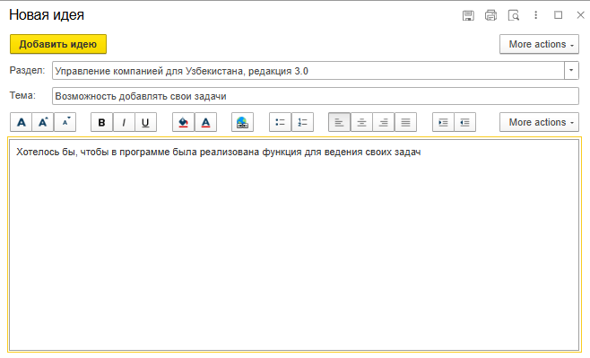 Если аналогичной идеи не найдено, следует нажать кнопку Добавить идею: