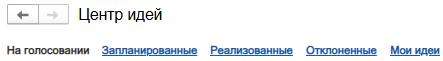 отобрать виды показываемых идей, нажимая гиперссылки На голосовании, Запланированные, Реализованные, Отклоненные и Мои идеи: