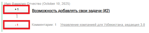 в разделе На голосовании можно голосовать за или против идей других пользователей, нажимая одну из кнопок +1 или –1 в описании идеи. Между этими кнопками отображается рейтинг идеи — разность между количеством голосов «за» и количеством голосов «против» идеи.