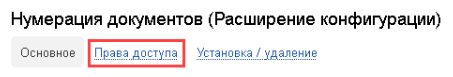 Задать нужные права абонентов на установку расширения конфигурации, дополнительного отчета или обработки. Значения переключателя на вкладке имеют следующий смысл: