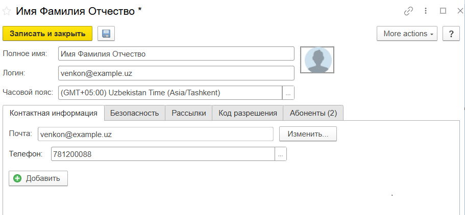 Кроме того, в форме свойств абонента можно вывести следующие сведения.