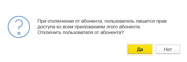 Владелец абонента или администратор абонента могут отключить пользователя сервиса от абонента. При этом пользователь лишается доступа к приложениям абонента.