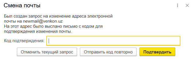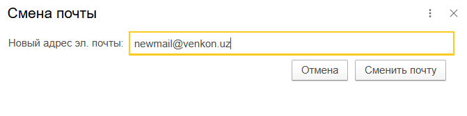 В выведенном окне Смена почты задать адрес электронной почты и нажать кнопку Сменить почту.
