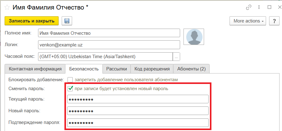 Выполнив описанные выше действия, следует нажать кнопку Записать и закрыть.