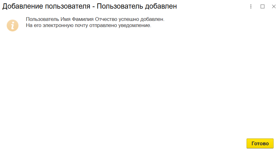 Если для пользователя была указана электронная почта, то в сообщении будет сказано, что пользователю направлено уведомление по электронной почте.