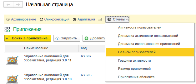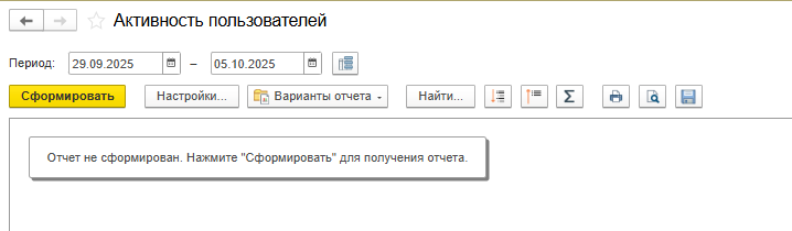 Для вызова отчета о сеансах пользователей необходимо выполнить следующие действия: