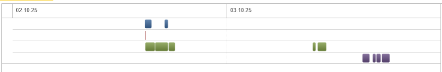 При выборе варианта отчета Гант будет выведена диаграмма Ганта, показывающая периоды работы пользователей абонента с приложениями.