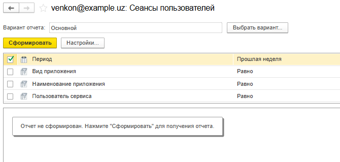 Параметры отчета «Сеансы пользователей»