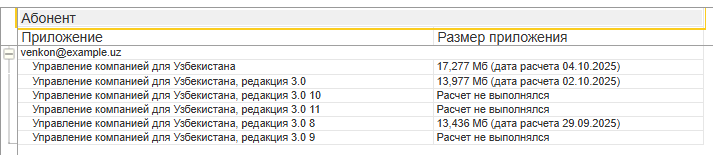 В отчете Размер приложений выводятся сведения о размере приложений используемых абонентами