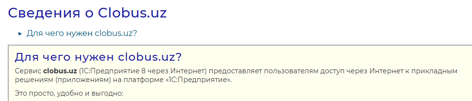Справка | Справочная информация о сервисе clobus.uz, размещенных в нем приложениях и обращениях в службу поддержки. |