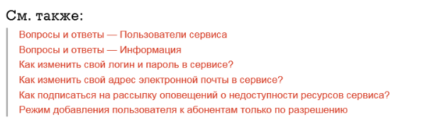 В нем даны ссылки на статьи справочной системы, содержание которых связано с просматриваемой вами статьей.